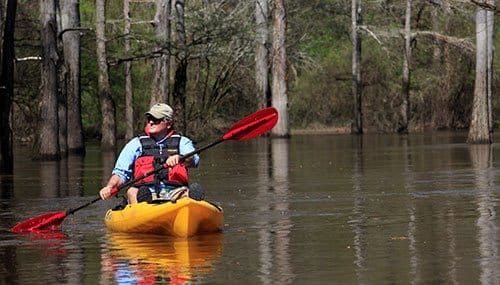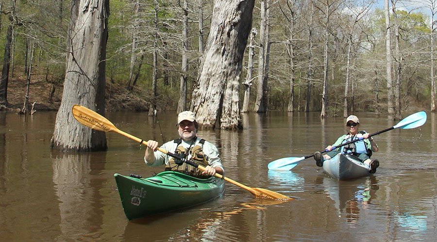 Cut-Off Creek is free of rapids, although high water can create dangerous conditions around trees and other obstacles; watch for snags, floating logs and cypress knees. The creek flows south; flow is minimal most of the year (expect to travel 1-2 miles per hour). At normal water levels, paddling upstream is an option. Respect private property marked by fences, signs or purple paint.