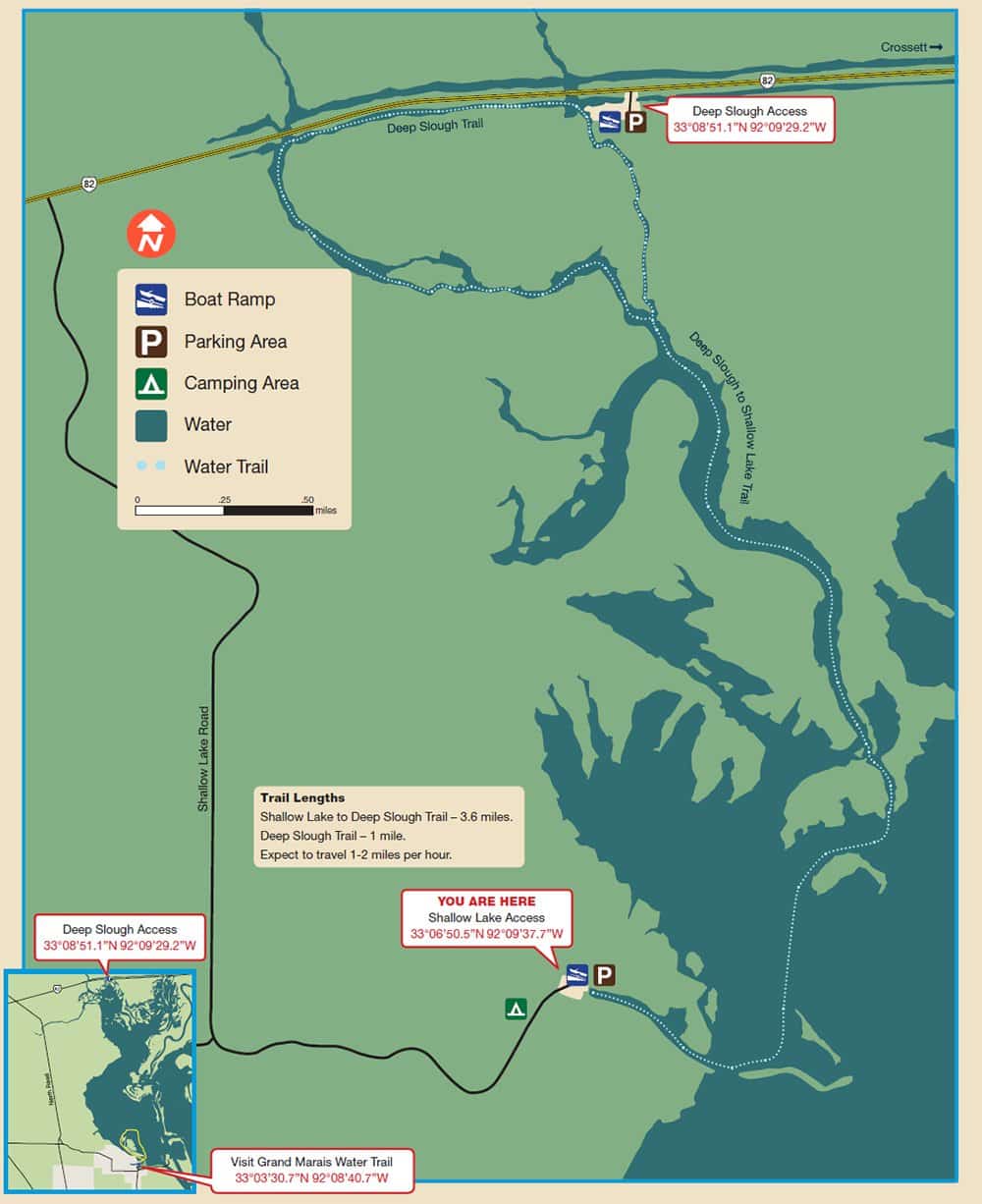 - Turn left into the parking area and boat ramp at the Deep Slough Access sign.