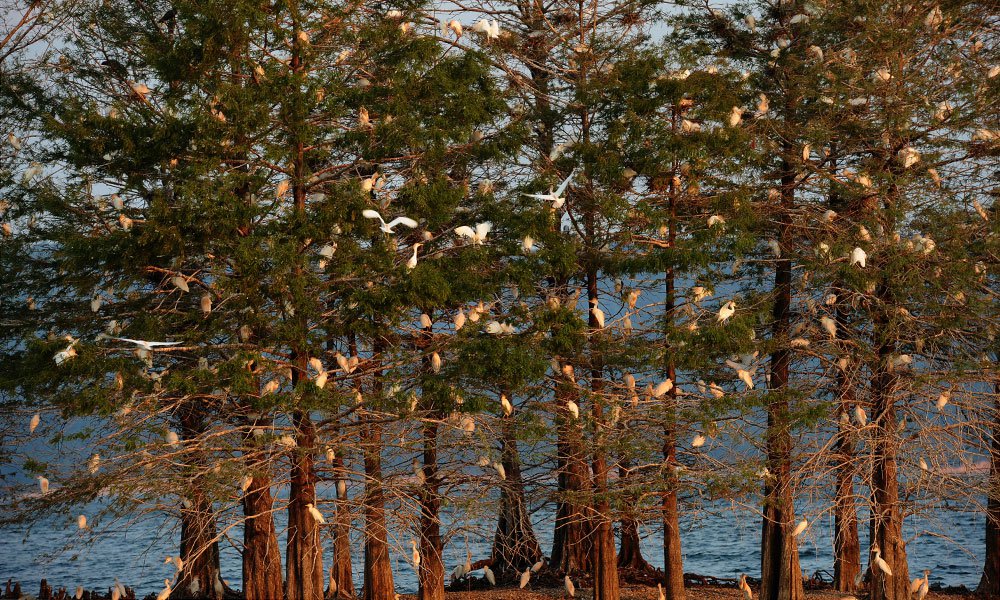 Watch for wintering bald eagles and waterfowl, and listen for loons calling. Wading birds stalk shallow water in search of prey. Red and white oaks and shortleaf pine dominate the landscape. Migratory songbirds flit about blooming dogwoods, serviceberry and redbuds during spring.