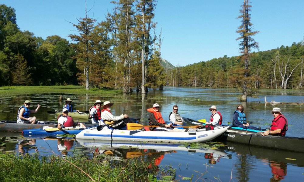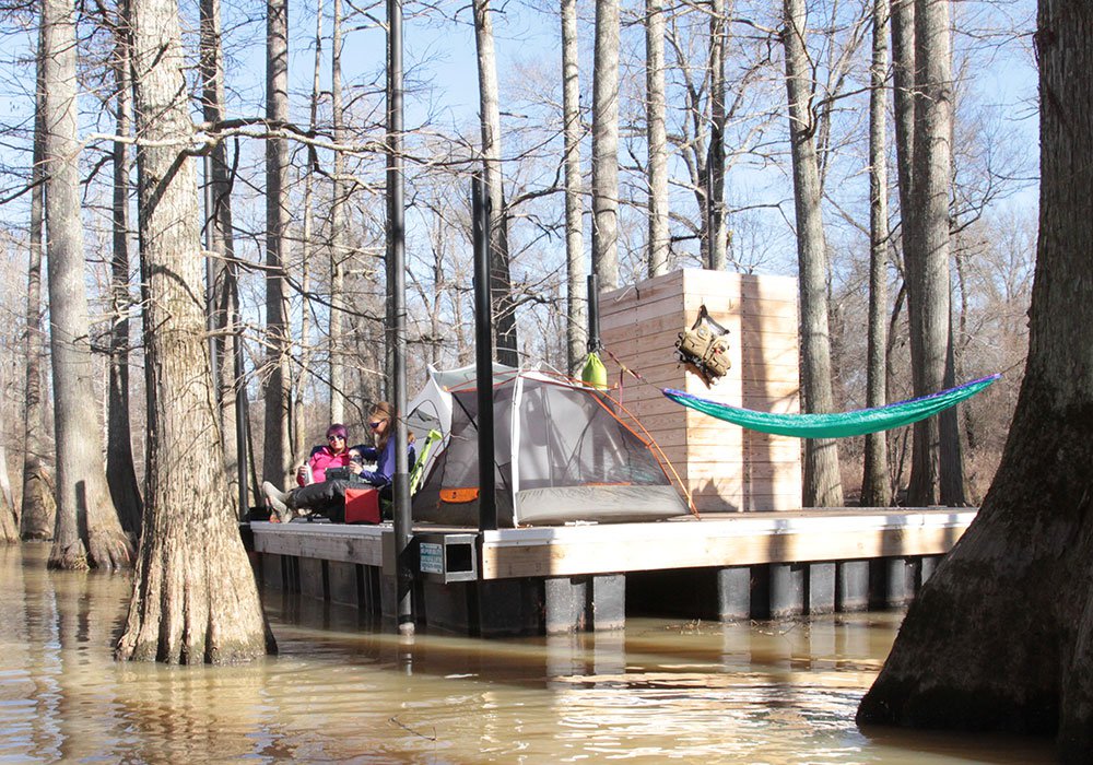 Hidden among the cypress trees, not far from the banks of the Nature Conservancy in Arkansas’s William Kirsch Preserve at Ranch North Woods, floats a new camping platform. This is a spot for paddlers to stop for the night and experience solitude, stars and the sounds of nature. The platform is available by reservation only. To request a reservation, click here.