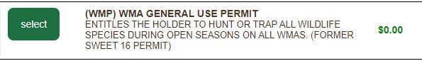 The permit costs $40 and is valid only Nov. 18-26, 2023, Dec. 27, 2023-Jan. 5, 2024, Jan. 21-31, 2024. It is available online, by telephone or from license dealers. Nonresidents will also need a free annual General Use Permit (WMP) to hunt or trap on any WMA.