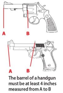 - handguns with barrels shorter than 4 inches. See illustration, right.